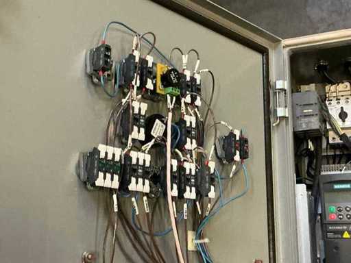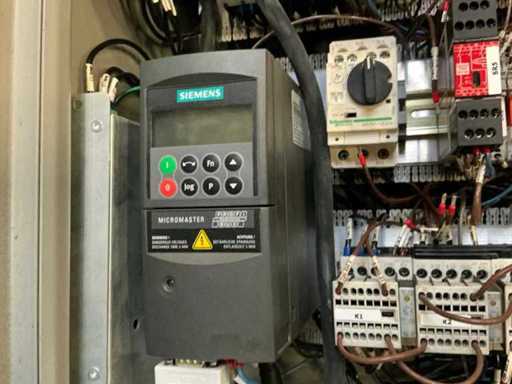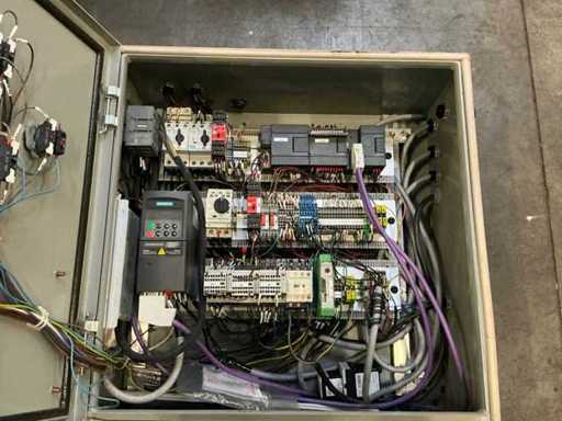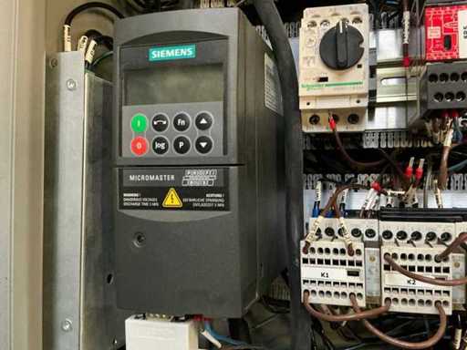Ausgestattet mit dem Siemens-Frequenzwandler Typ micromaster420 Leistung 1,5 kW, Siemens Simatic S7-200, Siemens Profibus-DP, Siemens-Motorschutzschalter und verschiedenen elektrischen Bauteilen.