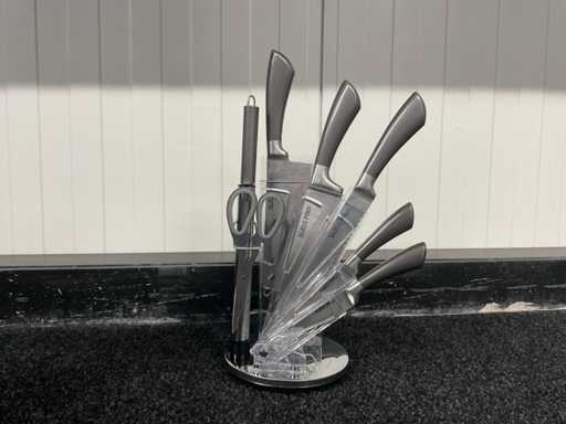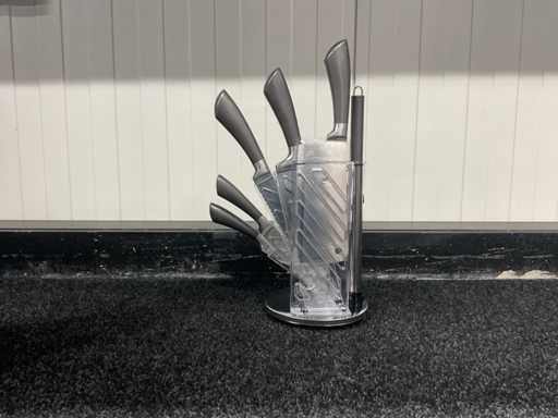 Ausgestattet mit Edelstahl; ergonomischer rutschfester Griff; Kochmesser; Brotmesser; hakmnes; Filetiermesser; Steakmesser; Schälmesser; Messerschärfer/Schleifstahl; Messerblock/-stand; Ungenutzt in der Box