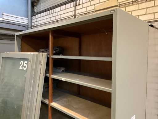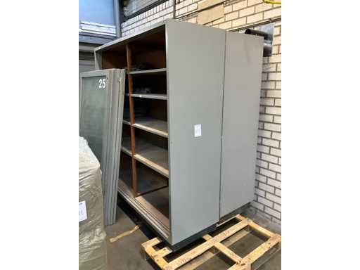 3x Schiebetür mit Glas pro Schrank, Türen separat erhältlich, 4 verstellbare Regale pro Schrank, ohne Palette