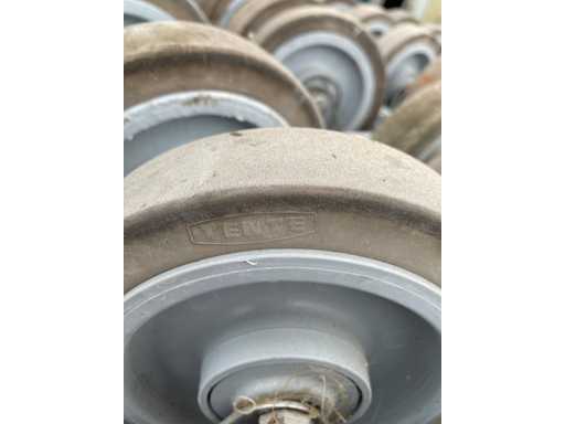 Bestehend aus: 8 Rädern, darunter 4 Schwenkräder mit Bremsen; Gabel aus rostfreiem Stahl; Montage auf Platte; nicht abfärbendes, elastisches Gummiband; Tragfähigkeit 400kg; mit Tablett;