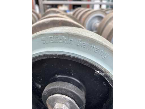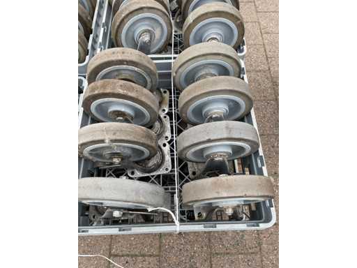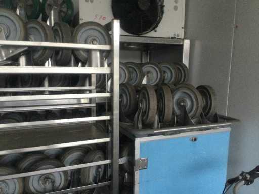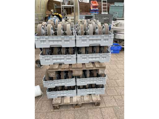 Bestehend aus: 8 Rädern, darunter 4 Schwenkräder mit Bremsen; 4 feste Räder; Gabel aus rostfreiem Stahl; Montage auf Platte; nicht abfärbendes, elastisches Gummiband; Tragfähigkeit 400kg; mit Tablett;