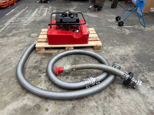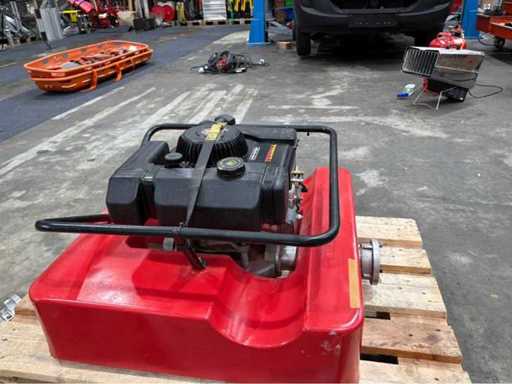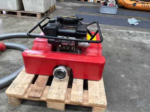 Schwimmpumpe auf Trägerplattform mit Benzinmotor (Briggs & Stratton). Beidseitige Storz-Kupplungen (Zubehör im Lieferumfang enthalten). Einheit auf Palette montiert. Zustand betriebsbereit laut Kundenangabe.