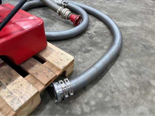 - Kunststoff (Auftriebskörper), Metall (Motor, Armaturen), Aluminium/Storz-Kupplungen, Saug-/Druckschläuche mit Spiraleinlage