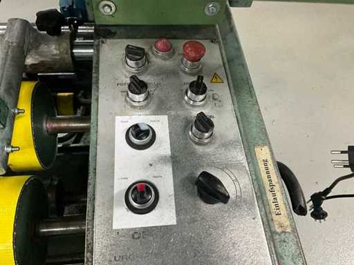 Arbeitsbreite ca. 1600 mm; Vorwärts- und Rückwärtsrollen; Ausgestattet mit: Rea Jet HR 2KG2 Programmierer; manuell beweglicher Winder; Zebra-Etikettendrucker; Dell-Computer mit Bildschirm Gesamtmaße ca. lxwxh: 3000 x 3300 x 2500 mm Referenznummer #10107