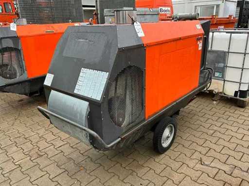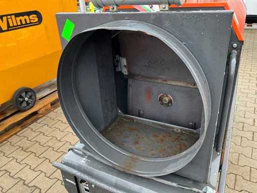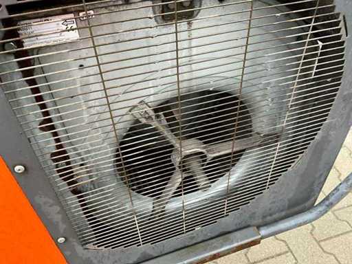 mobil; indirekt entlassen; Dieselbefeuert; externer Kraftstoffanschluss; Volumendurchfluss 11.500 m³/stunde; 7,7 Ampere; Luftauslassdurchmesser 600 mm; Abgasauslass; Augen zu heben; Gabelstapler-Gabelschlitze; Betriebszustand