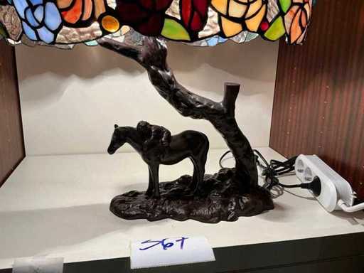 Farbiger Tiffanhy-Ton mit Blumenmuster, Basis des Kindes auf dem Pferd