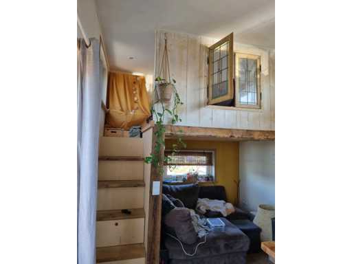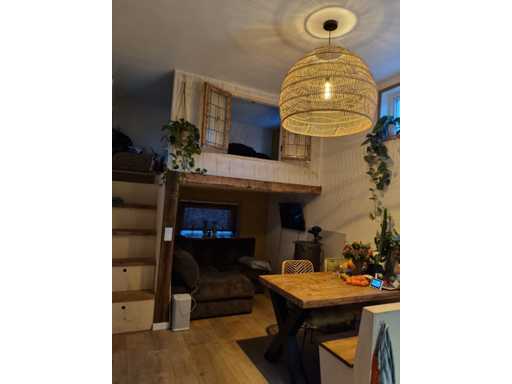 • Unter dem Dachboden eine gemütliche Sitzecke mit einem Raketenofenkamin – atmosphärisch, warm und ideal als Wohnbereich