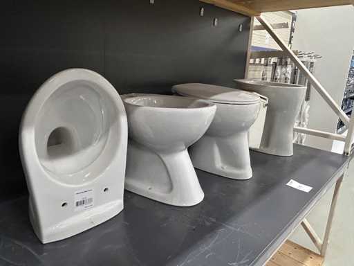 4x Toilettenschüssel und Zisterne, 3x stehendes Modell, 1x hängendes Modell