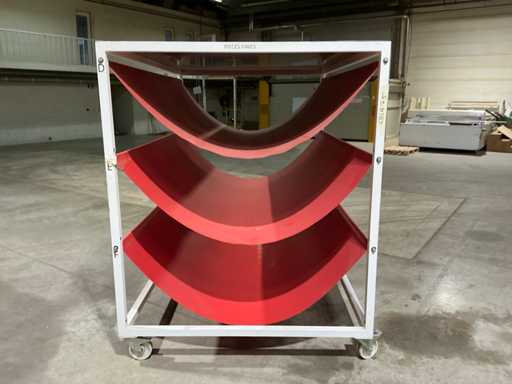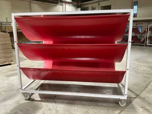 ausgestattet mit 2 festen Rädern und 2 schwenkbaren Rädern mit Bremsen; mit 3-facher Segelplattform