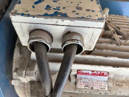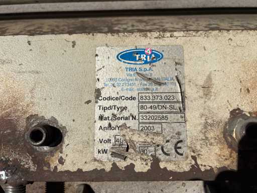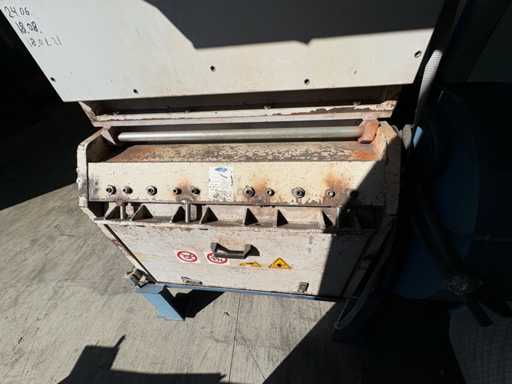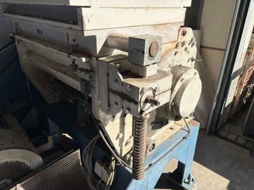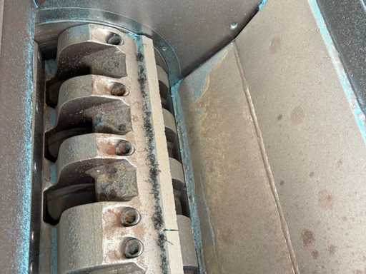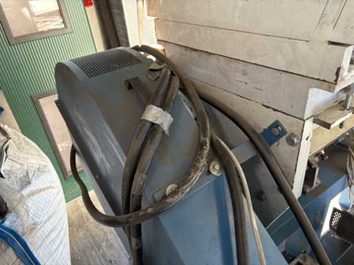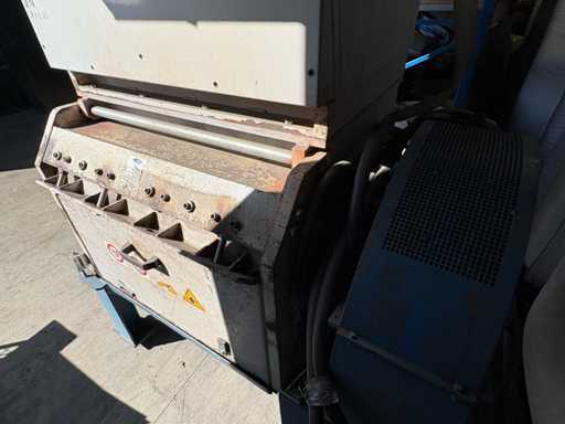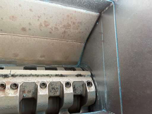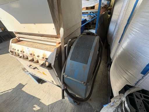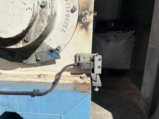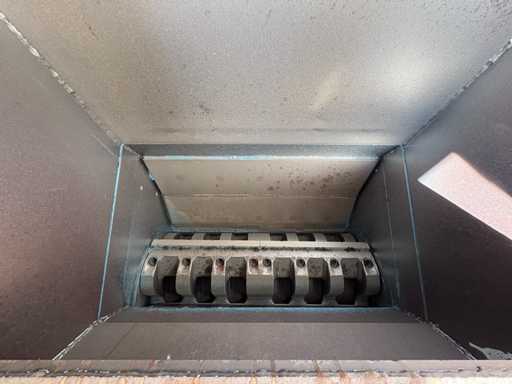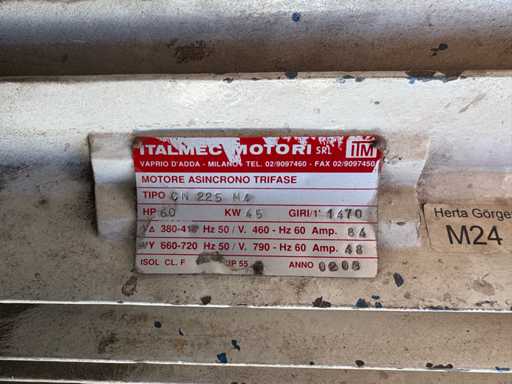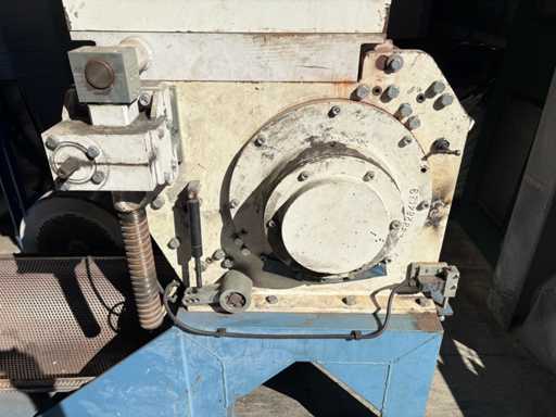 45 kW Antrieb, Schwungmassenrotor, Einfüllöffnung ca. 600 × 490 mm. Maschinengewicht ca. 1700 kg. Dreiphasiger Anschluss 400 V, gebaut in Italien.