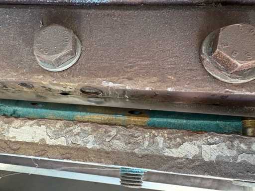Die Maschine weist typische Gebrauchsspuren auf (Kratzer, Farbabsplitterung, Rostansätze).