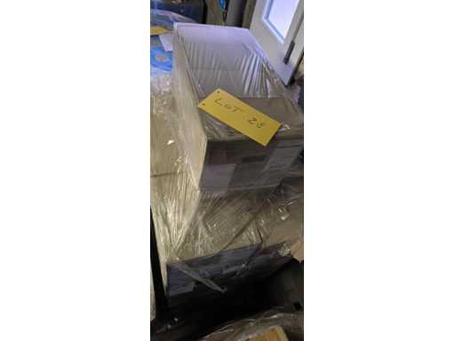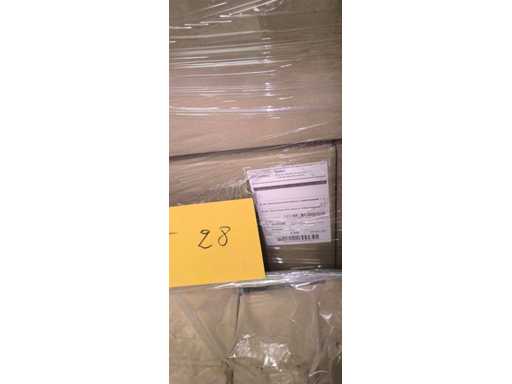 Die Palette bestand aus 26 Kisten weißer Turbel-Thermoetiketten, 100 × 200 mm Format . Jede Box enthält 3 Rollen mit 1.000 Etiketten, insgesamt 78 Rollen.
