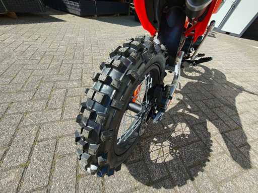 80 km/h max, 125 ccm, 11 PS, Fahrhöhe 85 cm, 4 Gänge, maximale Belastung 180 kg, Kickstarter, hydraulische Scheibenbremsen, unbenutzt im Karton.