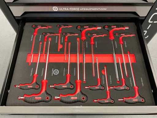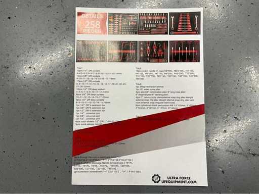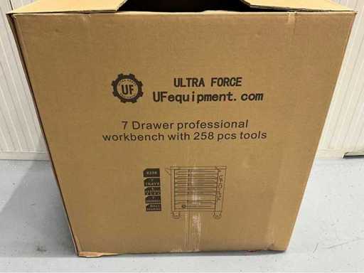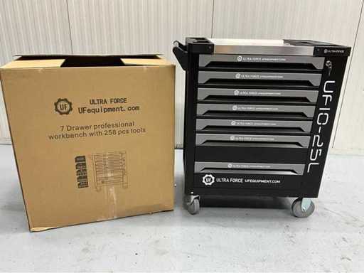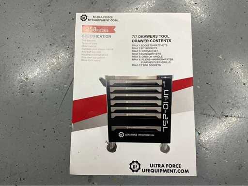 Ultra Force Equipment – Werkzeugwagen 7 Schubladen gefüllt mit 258 Stück Werkzeugen