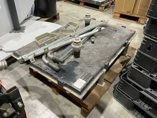 Das Grundstück besteht aus einer Vakuumpumpe; Klinkerplatte mit Einsatz; 30x30 Fliesenplatten; Reifen: Saugnapf für Gehwegreifen; Stelcon-Platten-Saugnapf