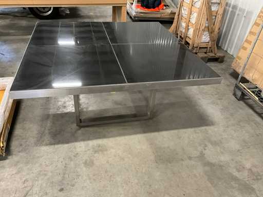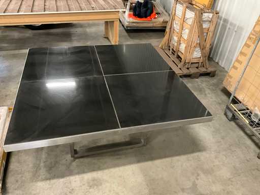 Ausgestattet mit einem Edelstahlgehäuse und Edelstahlbeinen mit Verstellschrauben, 4 Stücke Natursteindecken (Shanxi Black) Dicke 13 mm, ungenutzt