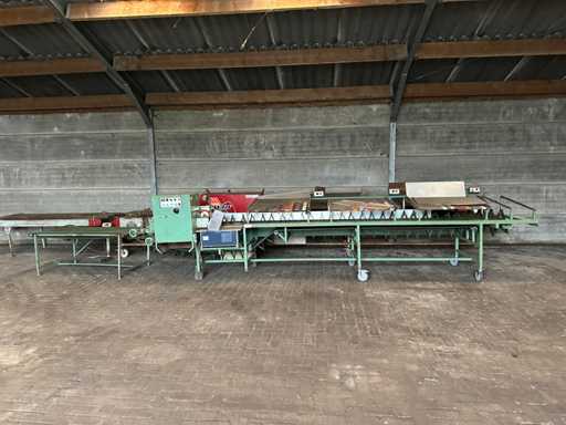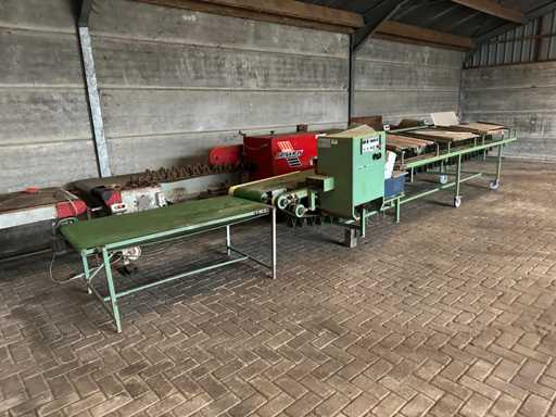 Ausgestattet mit sinkendem Einzeldachband inkl. Cyklop Bindemaschine, 3 Auflagetischen, Pufferband, Nebel, 2x Schwenkrad