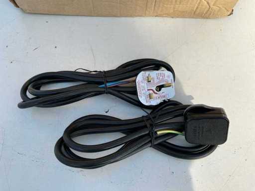 Box mit 50 Anschlusskabeln, Kabeldicke 3x1,5 mm² mit geerdetem englischen Stecker.