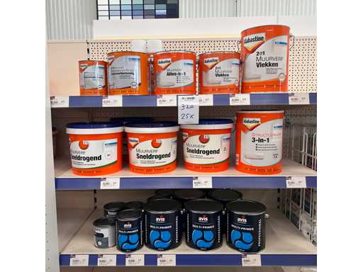 Bestehend aus unter anderem 14x Multiprimer, 4x schnell trocknende Wandfarbe, strukturierter Farbe usw
