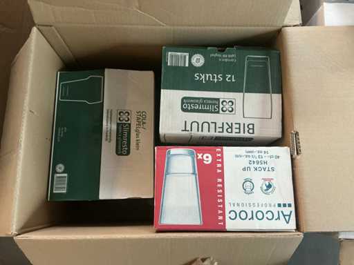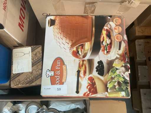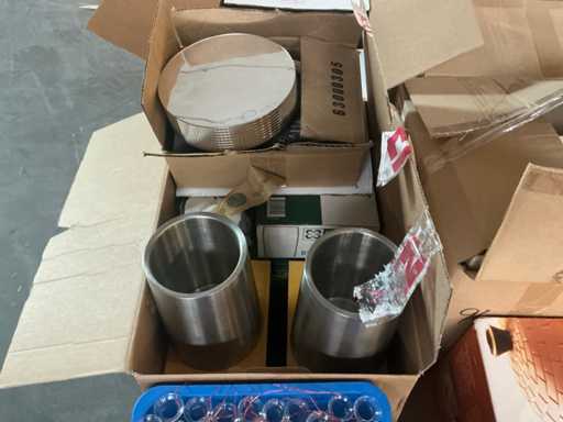 Bestehend aus einer Inhaltspalette, einschließlich Glas, Pizzarette, Champagnerkühler usw