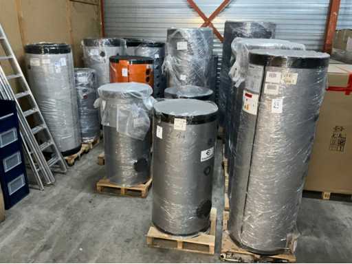 1x Zentralheizungs-Puffertank mit 300 Litern Kühlung und Heizung; 1x CV-Puffertank, 750 Liter; 3x Wärmepumpenwasserboiler mit 200 Litern; 1x Wärmepumpe-Wasserboiler mit 300 Litern und zusätzlicher Solarspirale; 2x Wärmepumpenwasserboiler mit 500 Litern und zusätzlicher Solarspirale; 2x Leitungswasserboiler mit 200 Litern und 2 Spiralen; 5x Leitungswasserboiler mit 300 Litern und 2 Spiralen; 3x Leitungswasserboiler 400 Liter mit 2 Spiralen; 1x Leitungswasserboiler 500 Liter mit 2 Spiralen; alle ungenutzt in der Originalverpackung; 1x Leitungswasserboiler 300 Liter mit 2 Spiralen im Ausstellungsraum;