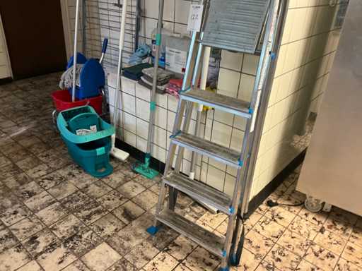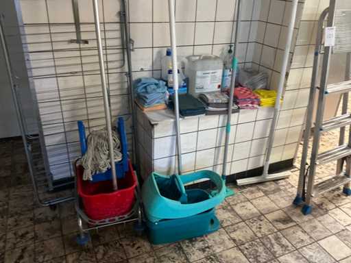 Bestehend aus 1x Gamma Dehnleiter, 1x Wischwagen, Hand- und Geschirrtüchern, Wäscheständer