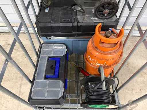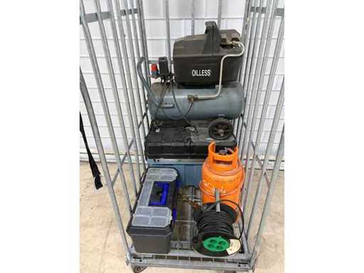 Dazu gehören: Kompressor, Verlängerungsspule, Werkzeugkoffer