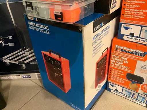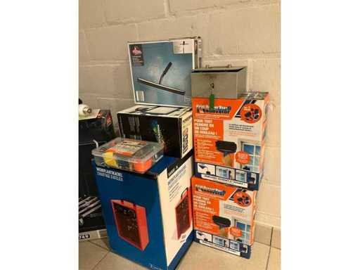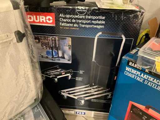 Dazu gehören ein alu-faltbarer Transportwagen Duro, der Werkstattofen Handson, das Partyzelt Central Park, eine Werkzeugkiste und einige verschiedene Dinge