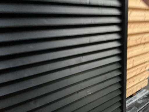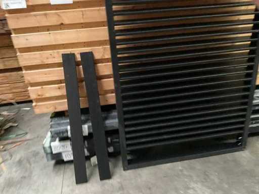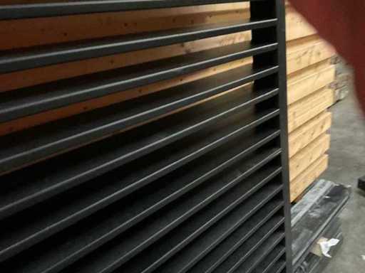 Verstellbarer Lamellenschirm – schwarz lackiert – 224x118 cm. Hinweis: 2 Lamellenteile sind locker.