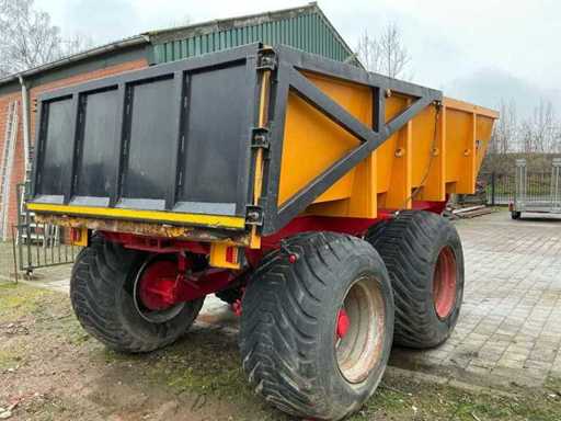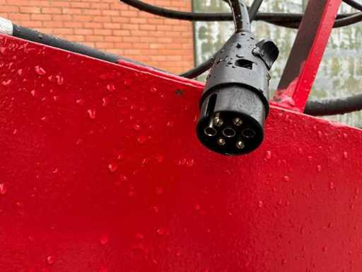 Ausgestattet mit: Zugverbindung, hydraulischem Stützbein, LED-Beleuchtung, hydraulischen Bremsen, hydraulischer Kippfunktion. Behältergröße: 500 x 220 x 90 cm.