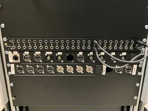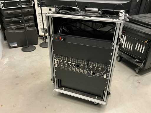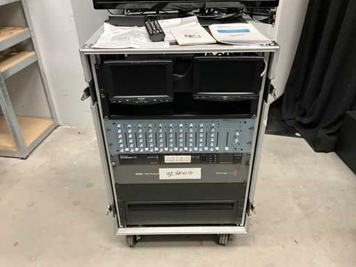 Bestehend aus "Blackmagic" ATEM 1 M/E Produktionsmischer; "Blackmagic" HyperDeck Studio HD Mini Recorder;" Blackmagic" Teranex Mini STI Verteilung 12G; "Alesis" Multimix 12R; 2x "BeeTronic" 7HD Monitor; "LG" 28LX320C Monitor und "Neutrik" NYS-SPP-L1 Audio Stabbing Field