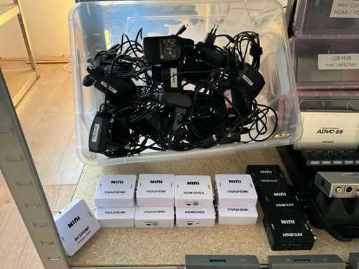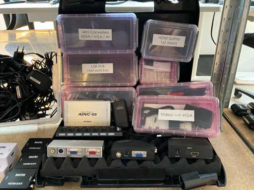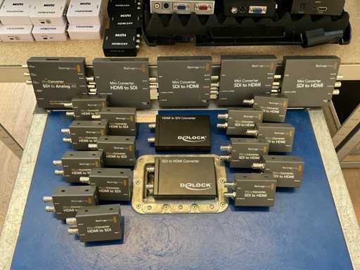 Bestehend aus "Blackmagic" HDMI auf SDI; "Blackmagic" SDI zu HDMI; "Canopus" Delock und verschiedene Arten