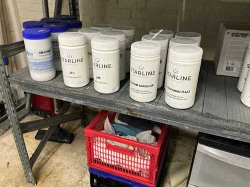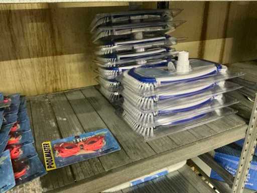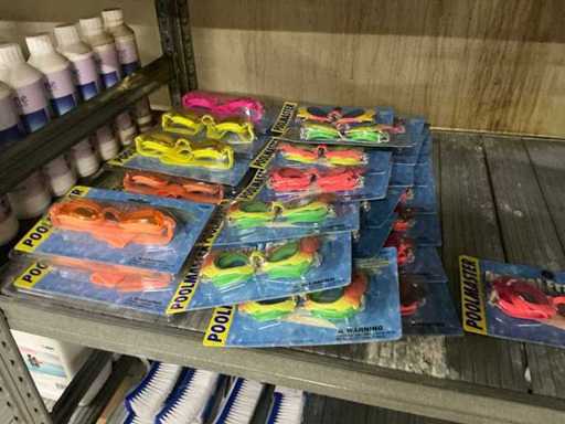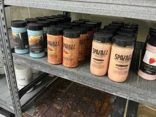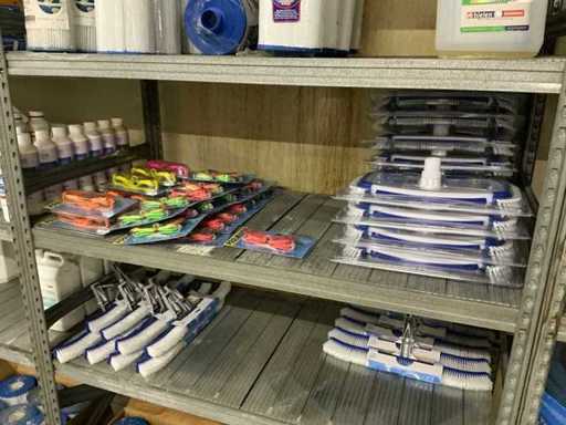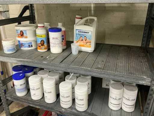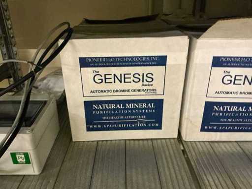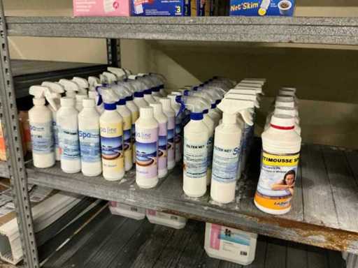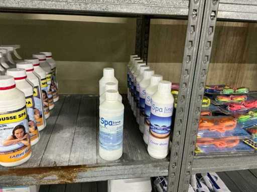 darunter Chlor, Jacuzzi-Düfte, Bürsten, Filter, Schutzbrillen, Vakuumschläuche, 16 Pioneer H2O Genesis Bromgeneratoren, Haushaltsreinigungsprodukte.... Ungefähr 400 Artikel