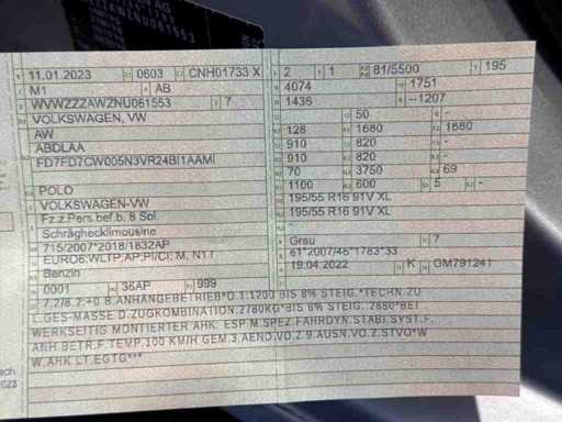 VW Polo direkt von Volkswagen Deutschland, Händlerwagen. Deutsche Zulassungspapiere Zuletzt bedient bei 26.874 km VIN/Fahrgestellnummer: WVWZZZAWZNU061553 Anzeichen von Abnutzung nach Alter und Entfernung. Besuchen Sie den Vorführtag für Ihre eigene Einschätzung. Unter den Bildern finden Sie den VIN-Bericht mit Werksinformationen sowie Optionen und Zubehör. Optionen und Zubehör Rücksitz umklappbar, Klimaanlage (Automatik), Alarmstufe 1 (Sperrsperre), Antiblockiersystem, Anti-Rutsch-Kontrolle, Apple Carplay/Android Auto, vordere Armlehne, Audiosystem, autonome Notbremsung, Reifendrucküberwachungssystem, Fahrerairbag, Sitzhöhenverstellbar, Innenspiegel automatisch dimmbar, Bluetooth-Handyvorbereitung, Bordcomputer, elektrisch faltbare Außenspiegel, elektrisch verstellbare Außenspiegel und beheizt, Stoßfänger in Karosseriefarbe, zentraler Airbag vorne, Zentralverriegelung mit Fernbedienung, Komfortsitz(e), angeschlossene Dienste, DAB-Empfänger, automatische Abblendlichter, kabelloses Handy-Ladegerät, elektrische elektrische Fensterheber vorne und hinten, elektrisches Panoramadach aus Glas, elektronisches Stabilitätsprogramm, zusätzliches getöntes Glas, Stauassistent, Fernlichtassistent, Hill-Hold-Funktion, hintere Kopfairbag(s), vordere Kopfairbag(s), Innenraumakzente, adaptive Scheinwerfer, LED-Rückleuchten, LED Tagfahrscheinwerfer, Lederlenkrad, LED-Scheinwerfer, Lendenwirbelstützen (verstellbar), Leichtmetallräder 16", Metallfarbe, adaptive Nebelscheinwerfer vorne, multimediale Vorbereitung, Navigationssystem, Serviceheft (digital), Panoramadach, Parksensor vorne und hinten, Beifahrerairbag, Sitzhöhenverstellbar, Spursensor mit Korrektur, Lenkradschaltung, Start-/Stopp-System, beheizbare Sitze, verstellbares Lenkrad, Multifunktional Lenkrad, abnehmbarer Abhänger, Anhängerstange mit abnehmbarer Kugel, Verkehrsschildererkennung, Ermüdungserkennung, virtuelles Cockpit, komplett digitales Instrumenteninstrumentencluster, komplett digitales Instrumentenpanel groß, vollständige Händler-Servicehistorie verfügbar und Seitenairbags vorne