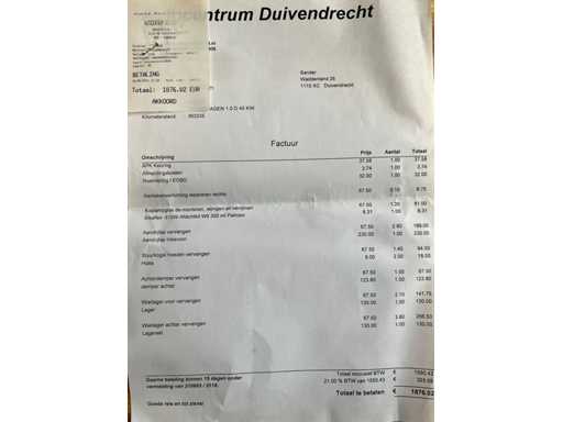Betaal eenvoudig met iDeal via uw Troostwijk Account. Het is niet mogelijk om contant of per PIN te betalen. Nadat u de auto gewonnen heeft en de betalingsorder /PO# order klaar staat in uw account onder 'mijn aankopen', dient u deze online te betalen via de Troostwijk-Auctions website of Troostwijk-Auctions app. Let op dat al uw accountgegevens goed staan die op de factuur moeten komen, wij kunnen dit niet achteraf aanpassen.