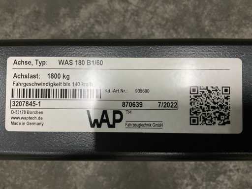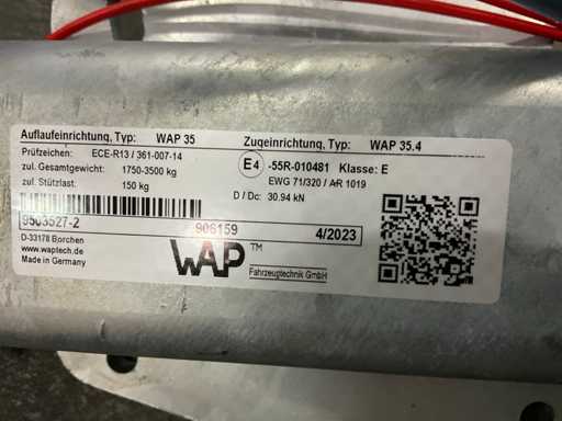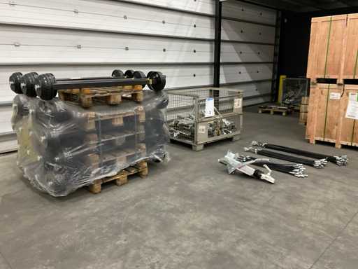 Bestehend aus: 10x Überlaufbremse 35/35,4 Tonnen, maximale Masse 1750–3500 kg, maximales Kugelgewicht 150 kg, Baujahr 2023; 30x Achse, 1800 kg, Star Pad 1084, Baujahr 2022; 30x Bremskabel 800/990; 30x Bremskabel 900/1090; 30x Bremskabel 1300/1490.