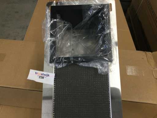 Wenn Sie das eingebaute Teil hinter eine Fliese kleben und den schwarzen Rahmen, in dem die Rolle hängt, eindrücken, sehen Sie eine sehr hässliche Kante der Fliese unter der Rolle, weil die Kante des Rahmens einfach zu kurz ist.