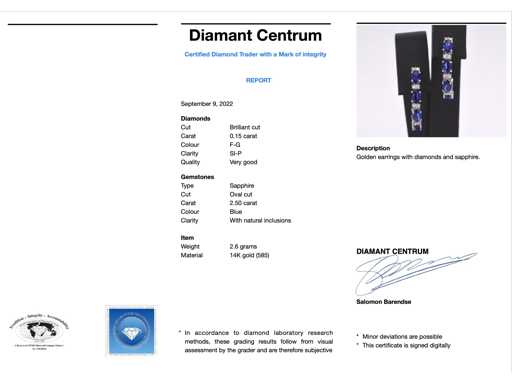 Saphir Diamant: Natürlich; Schnitt: Brillantschnitt; Gewicht (Karat): 0,15 Karat; Farbe: F-G; Reinheit: SI-P; Schnittqualität: Sehr schön; Edelstein: Saphir; Schnitt: Ovaler Schnitt; Gewicht (Karat): 2,50 Karat; Juwel: Ohrringe; Gewicht: 2,6 Unzen; Material: 14 Karat Gold (585); Zustand: Neu; Verpackung: Luxus-Schmuckschatulle; Erklärung: Die Qualität wurde aus dem Bericht übernommen, der zum Artikel gehört. Die Bewertung ist eine Bewertung eines zertifizierten Diamanthändlers, basierend auf Verbraucherpreisen; Konsumpreis: 2.363 €