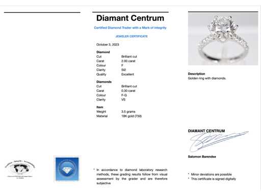 Diamanten: Natur; Menge: 1 Stück; Schnitt: Brillantschnitt; Gewicht (Karat): 2,00 Karat; Farbe: F; Reinheit: SI2; Schnitt: Ausgezeichnet; Diamant (sekundär): Kleine Diamanten; Schnitt: Brillantschnitt; Gewicht (Karat): Gesamtgewicht 0,30 Karat; Farbe: F-G; Reinheit: USA; Juwel: Ring; Gewicht: 3,5 Unzen; Ringgröße (maßgeschneidert*): 53 (17 mm); Material: 18K Gold (750); Zustand: Neu; Verpackung: Luxus-Schmuckschatulle; Erklärung: Die Qualität wurde aus dem Bericht übernommen, der zum Artikel gehört. Die Bewertung ist eine Bewertung eines zertifizierten Diamanthändlers, basierend auf Verbraucherpreisen; Verbraucherpreis: 50.760 €