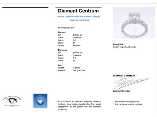 Diamanten: Natur; Menge: 1 Stück; Schnitt: Brillantschnitt; Gewicht (Karat): 2,00 Karat; Farbe: F-G; Reinheit: SI; Schnitt: Ausgezeichnet; Diamant (sekundär): Kleine Diamanten; Schnitt: Brillantschnitt; Gewicht (Karat): 1,00 Karat Gesamtgewicht; Farbe: F-G; Reinheit: USA; Juwel: Ring; Gewicht: 4 Gramm; Ringgröße (maßgeschneidert*): 53 (17 mm); Material: 18K Gold (750); Zustand: Neu; Verpackung: Luxus-Schmuckschatulle; Erklärung: Die Qualität wurde aus dem Bericht übernommen, der zum Artikel gehört. Die Bewertung ist eine Bewertung eines zertifizierten Diamanthändlers, basierend auf Verbraucherpreisen; Verbraucherpreis: 49.000 €