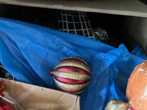 Girlanden, Bäume, Bälle und Statuen.; Achte nur darauf, was im mittleren Regal steht;