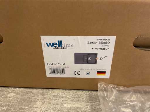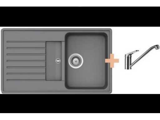 Welltime Berlin Spülbecken (grau) + Wasserhahn 86 x 50 cm