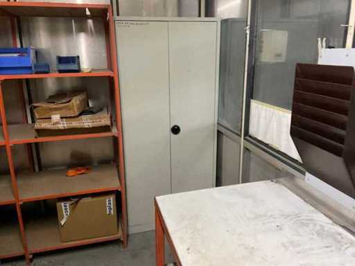 - Dazu gehören 2-Türer-Schränke, Regale, Werkzeuge, Arbeitstisch usw