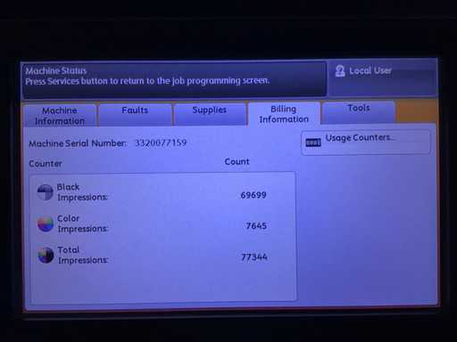A3 multifunktionaler Kopierer Color, Zählerstand 773.444 Drucke gesamt, Copy Pass Status OK, von einem legitimierten Techniker überprüft! Bitte beachten Sie die beiliegenden Bilder für die verbleibenden Toner- & Trommelstände in Prozent!
