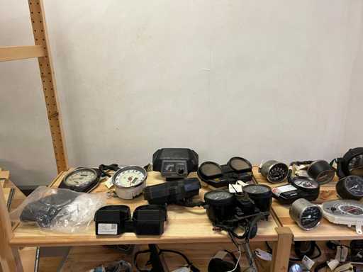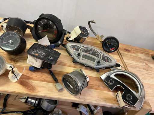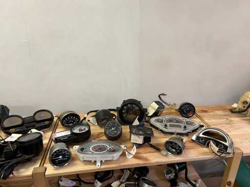 Eine Charge verschiedener Tachometer und Armaturenbretteinheiten von verschiedenen Rollern und Motorrädern.