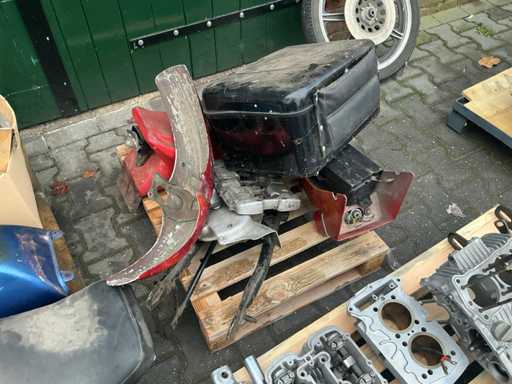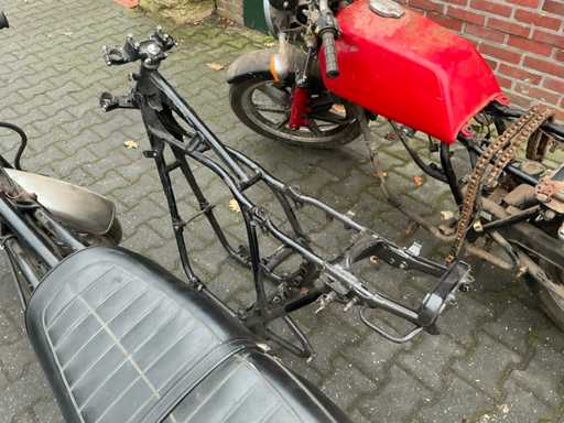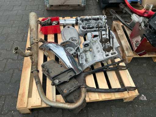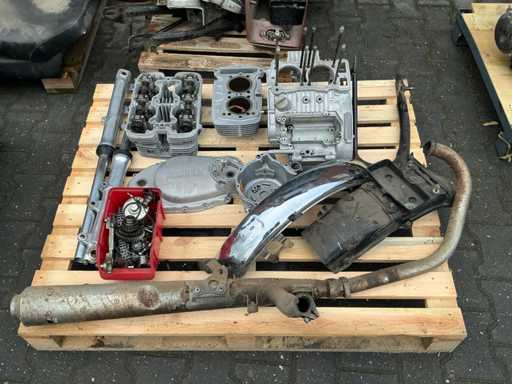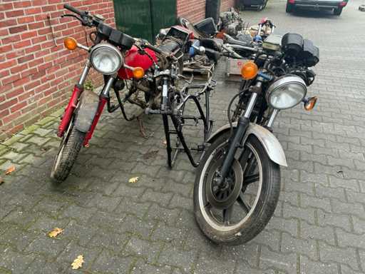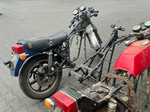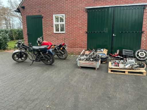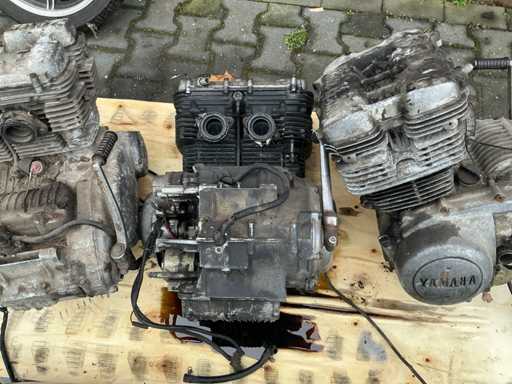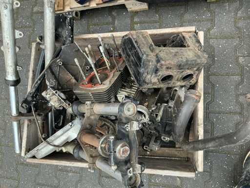 Bestehend aus 2 unvollständigen Yamaha-Motoren, einem Yamaha H2 XS500-Rahmen, verschiedenen separaten Motorteilen, darunter Buddy-Sitze, Teile des Tankmotorblocks, Auspuff, Abdeckungen, Rädern und 4 Yamaha-Motorblöcken.