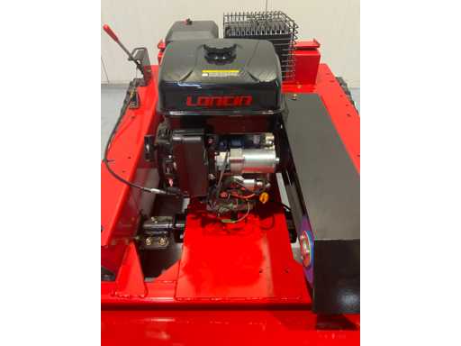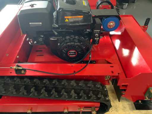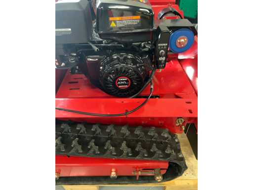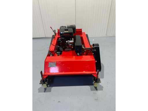 Selbstfahrender Rasenmäher, raupengesteuert, mit Fernbedienung, geeignet für unwegsames Gelände.