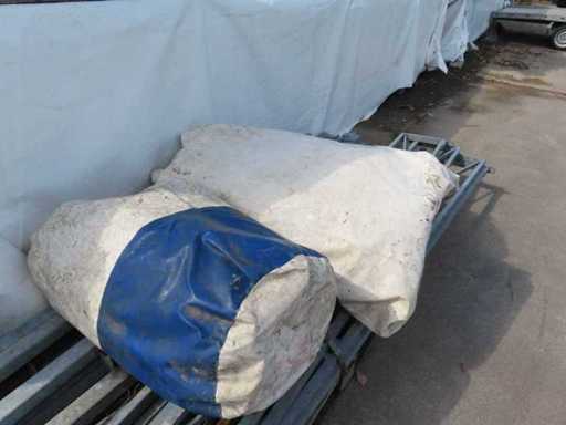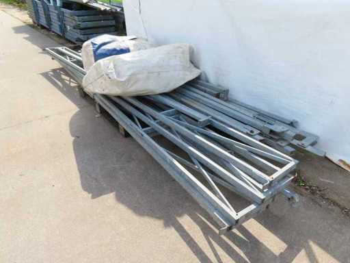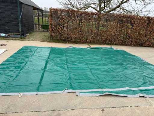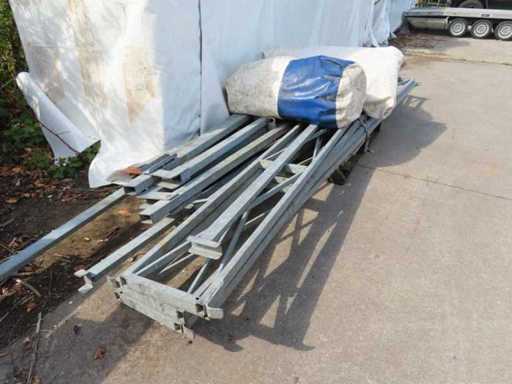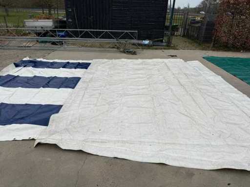 1 x weiß/blau, 1 x grün, 3 Seiten geschlossen, vorne offen (4 Meter), mit Stahlkonstruktionen.