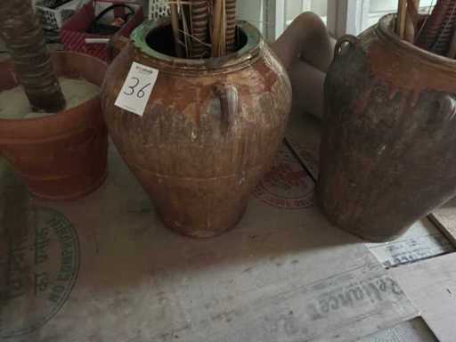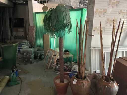Bestehend aus 2 dekorativen Vasen mit Inhaltsgrößen; (h60xw50cm), 1x künstliche Palme mit Topf in der Größe; (h220xb45cm).
