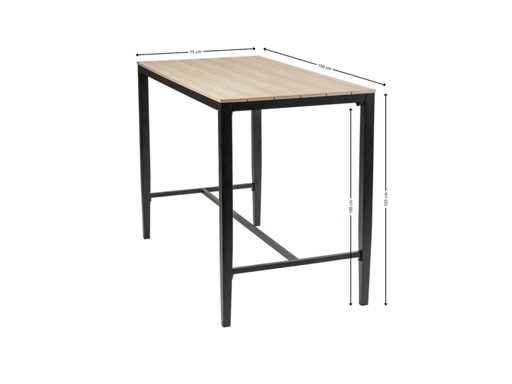 Dieser stilvolle Bartisch ist mit Blick auf Benutzerfreundlichkeit und Erscheinung gestaltet. Die Oberseite besteht aus langlebigem Polyholz, einem Kunststoffmaterial mit dem warmen Aussehen von echtem Holz. Das verleiht dem Tisch ein robustes und natürliches Aussehen, das perfekt zur Außenwelt passt. Der Rahmen besteht aus robustem Aluminium mit einer mattschwarzen Pulverbeschichtung, wodurch der Tisch nicht nur leicht, sondern auch widerstandsfähig gegen verschiedene Wetterbedingungen ist.